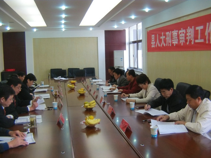 县法院院长就2012年以来,县法院贯彻落实宽严相济政策,全力维护社会和谐稳定;量刑规范化工作开展;刑事审判机构和队伍建设;现阶段刑事审判工作存在的困难和问题及进一步做好刑事审判工作的意见和建议等方面进行了汇报。