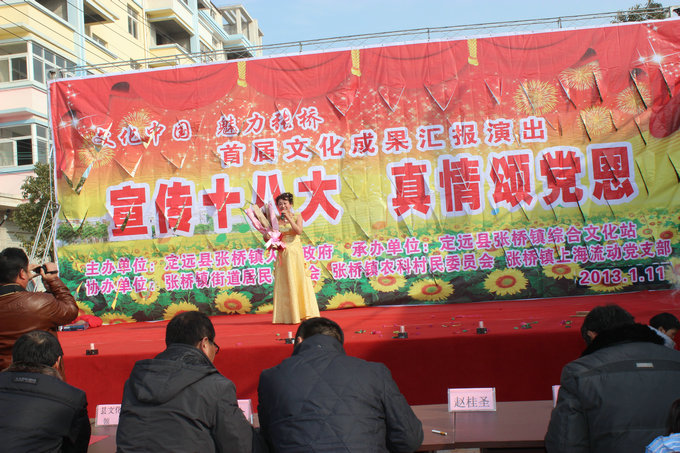 元月11日下午,由张桥镇政府主办,张桥镇综合文化站承办的“宣传十八大真情颂党恩”主题汇报演出在张桥镇东大街隆重举行,张桥镇人大及早宣传,组织近百名历届市、县、镇人大代表和数百名群众一起现场观看演出。通过这次活动,加强代表们对十八大精神的学习,提高人大代表的亲民和为民意识。(冯明玉)