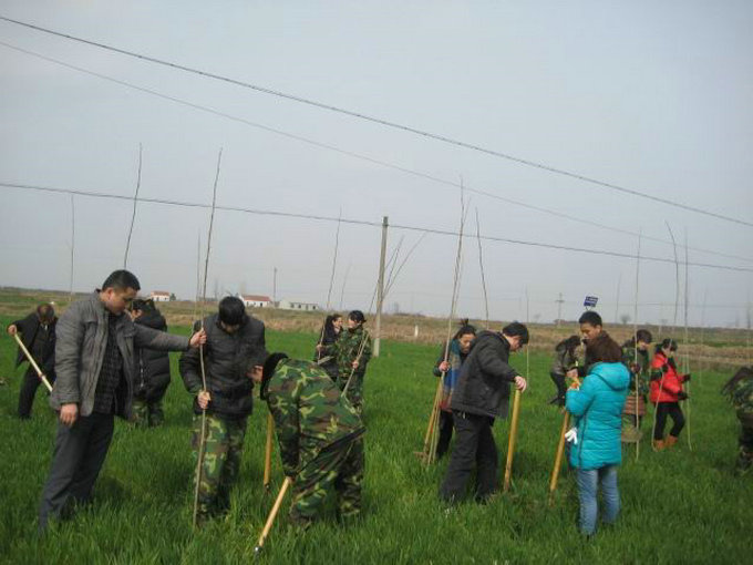 植树现场,大家三五成群、分工合作,挖洞、扶苗、填土,踩实,大家忙碌不停,干劲十足、热情高涨,田野里到处洋溢着植树的笑声。短短三个小时,经过大家的共同努力,一棵棵树苗拔地而起,错落有致。据统计,共栽植法国梧桐近4000余株。