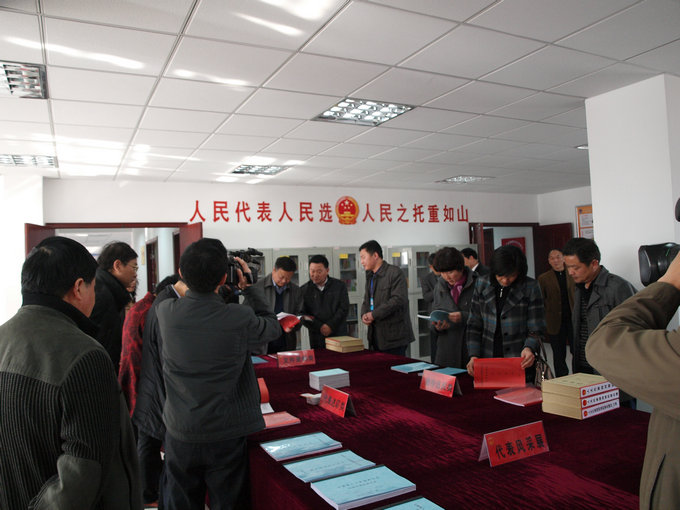 考察组一行参观了定城镇靠城路人大代表活动室,首先听取了镇人大关于代表活动开展情况汇报,然后查看了相关软硬件资料。充分肯定了我镇“代表活力工程”建设工作并对我镇“代表活力工程”建设所取得的成效给予了高度评价。